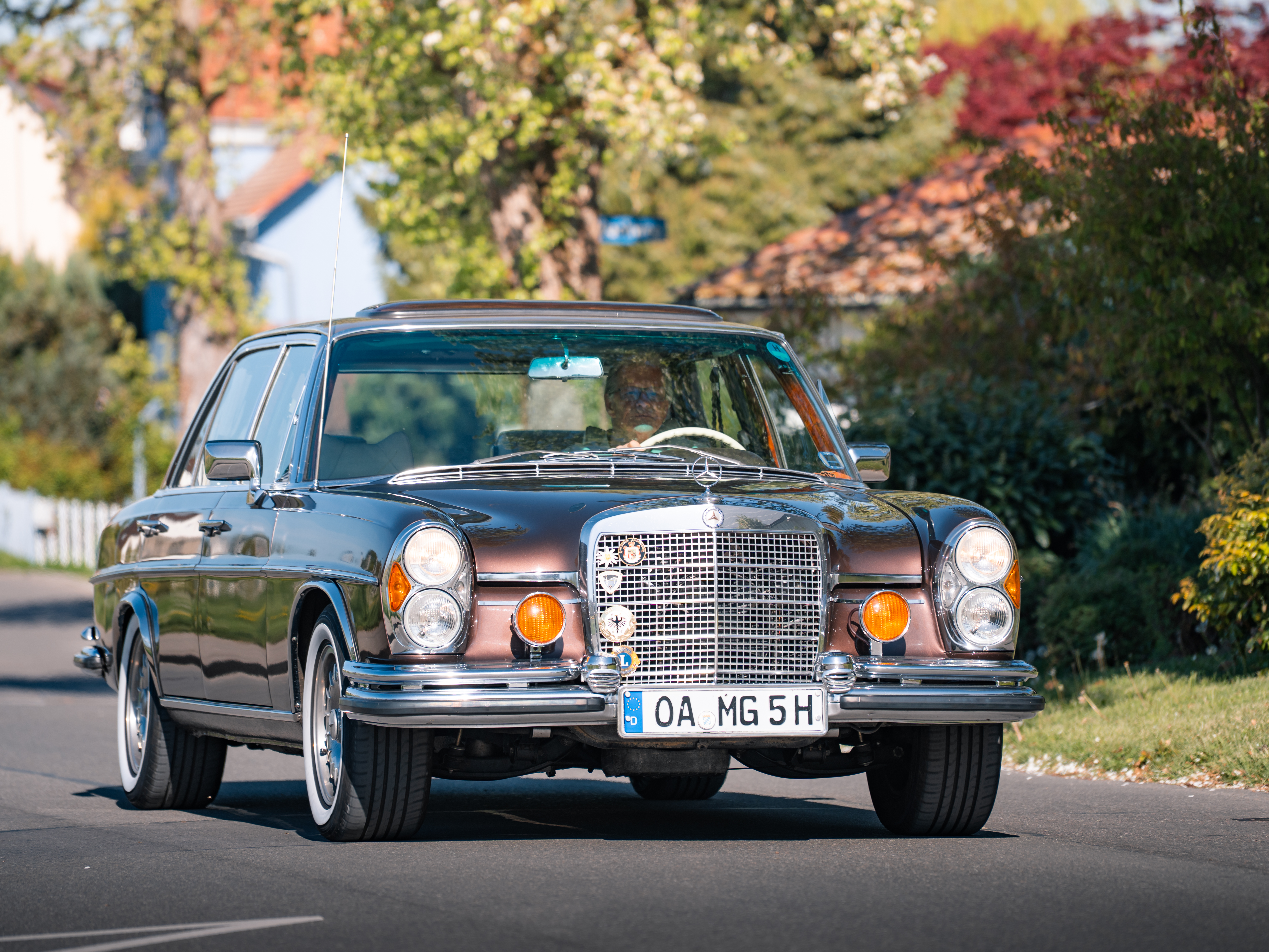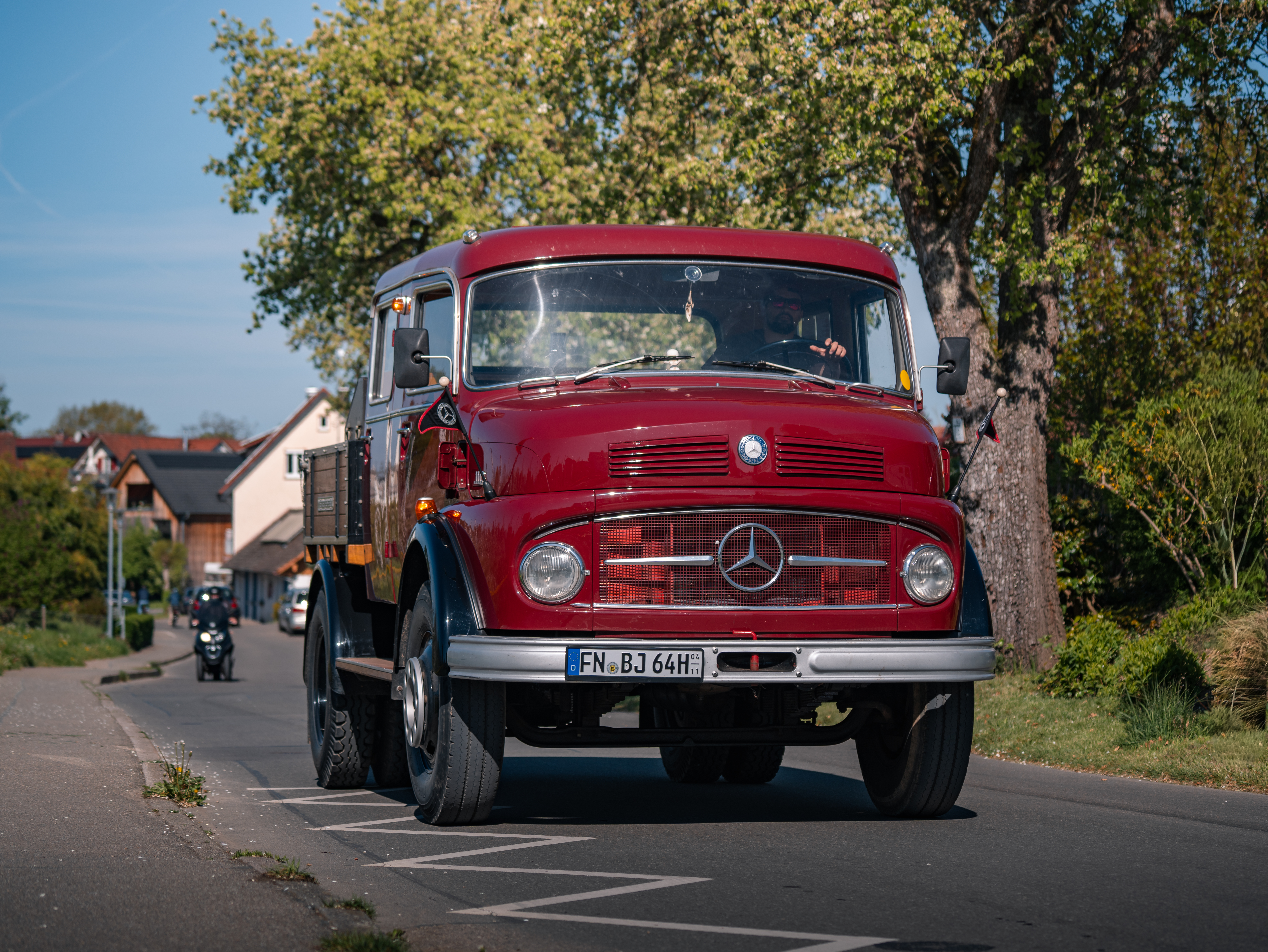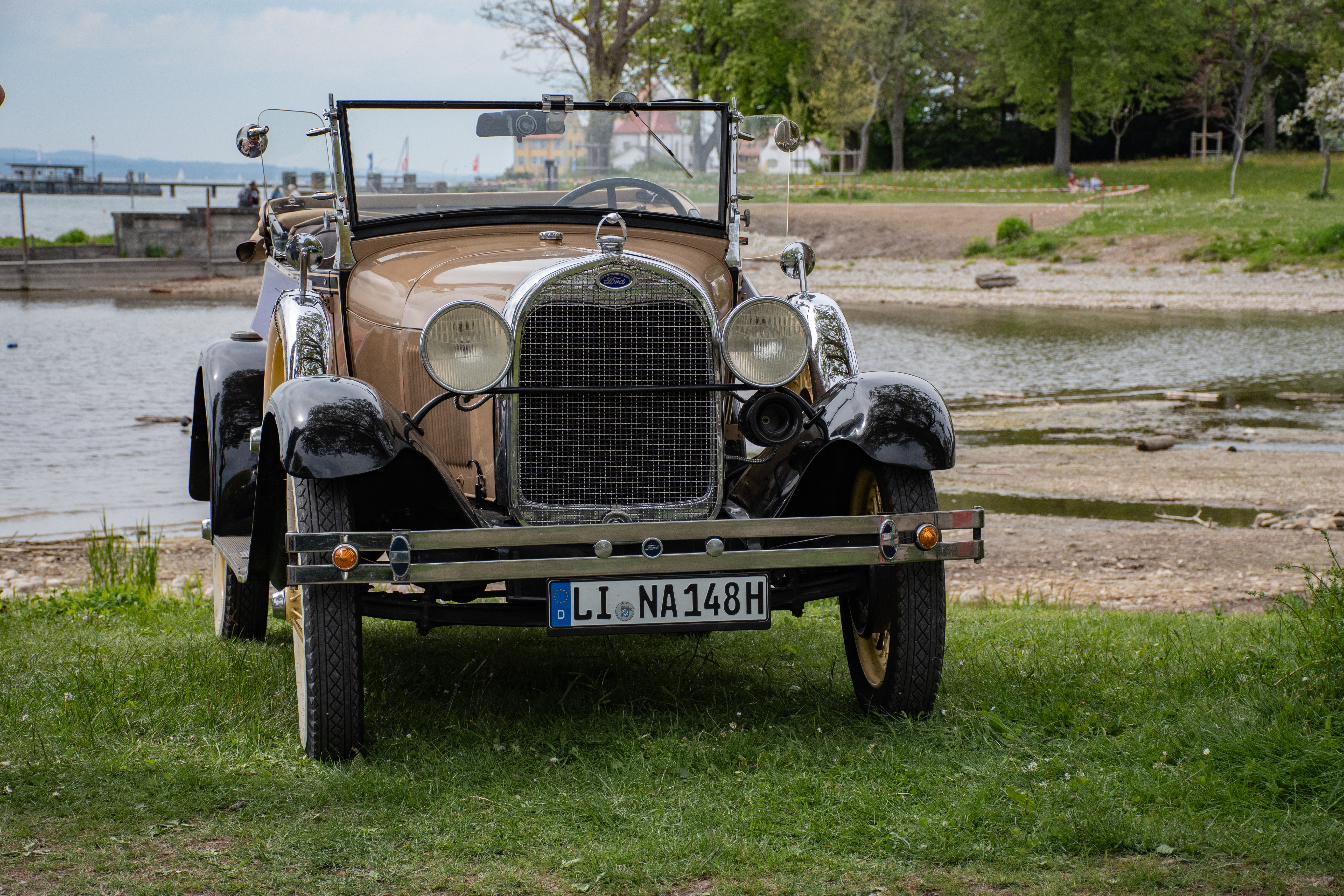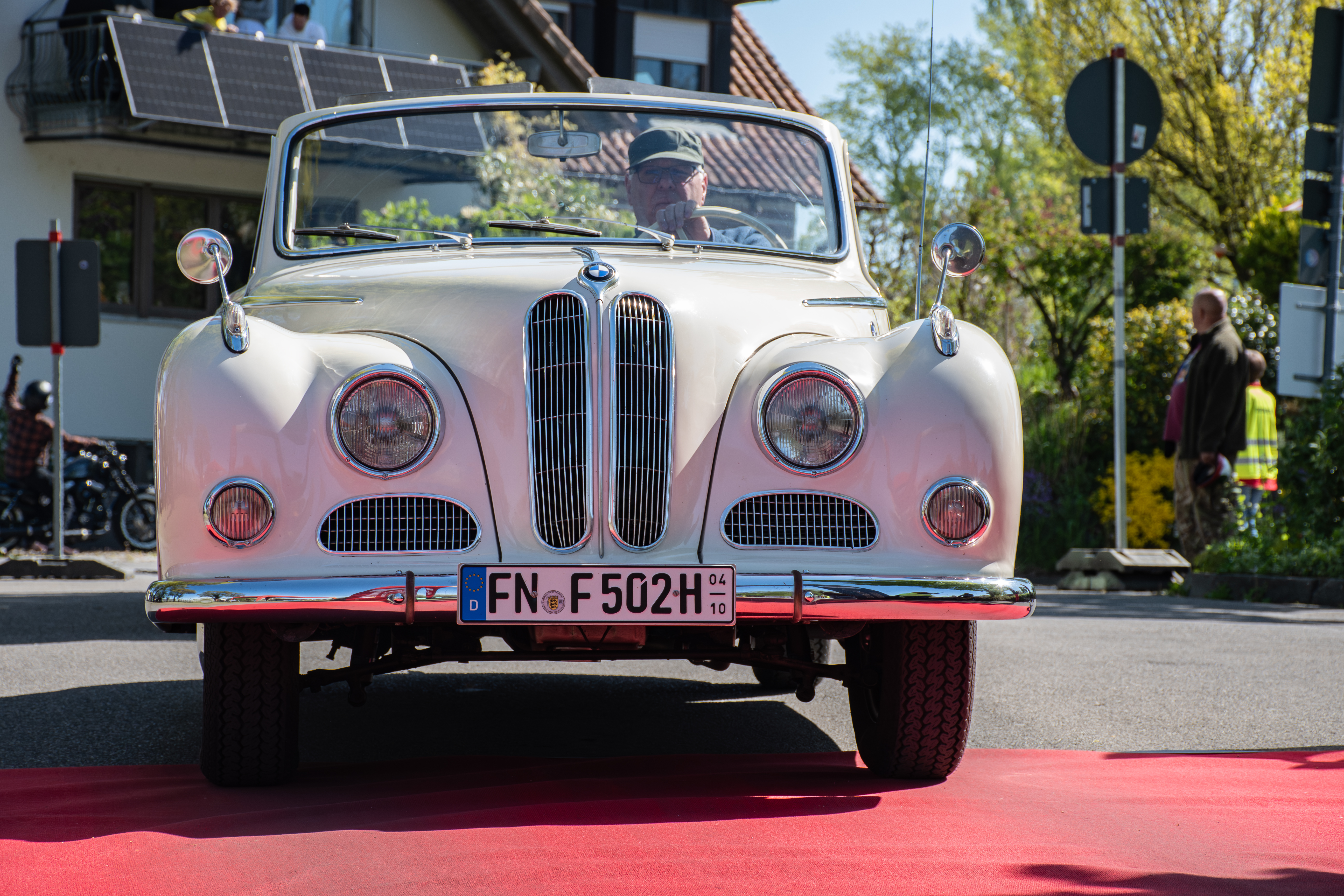 Die primäre Zufahrt zum Oldtimer-Treffen zieht sich über eine schmale Straße durch den Ortskern von Wasserburg hindurch, vorbei an einem Eiscafé und dem Marktplatz. Da die Touristensaison am Bodensee bereits ab April ins laufen kommt, haben sich folglich auch Urlauber in Wasserburg aufgehalten. So war das Stelldichein historischer Fahrzeuge, die entlang der Dorfstraße ratterten, ein überraschendes und seltenes Rendezvous für Augen, Ohren und Nasen – mit dem Duft und dem Klang automobiler Geschichte.